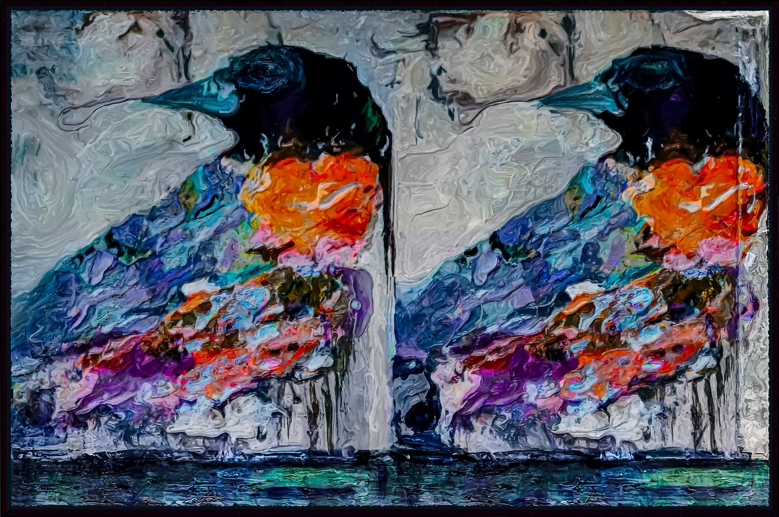 I have always been fascinated by 19th-century stereoscopes, and as I began this piece, I repeated the bird image in a way that reminded me of those early attempts at 3D image making.